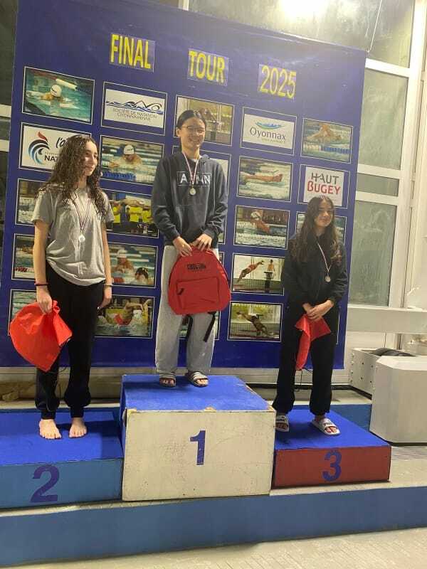 Agathe 1ère sur 100m NL en 1:08, 3e sur 400m NL en 5:16, et 3e au 200m NL en 2:28