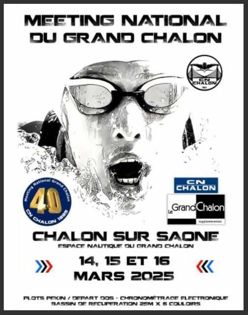 Ce week-end, notre Team Compétition (TC) est en déplacement à Chalon pour participer au Grand Meeting. Cet événement de haut niveau représente une belle opportunité pour nos nageurs de se mesurer à une concurrence relevée et de repousser leurs limites.